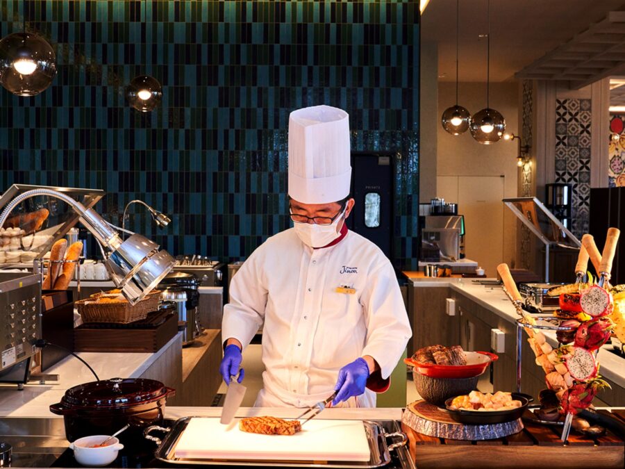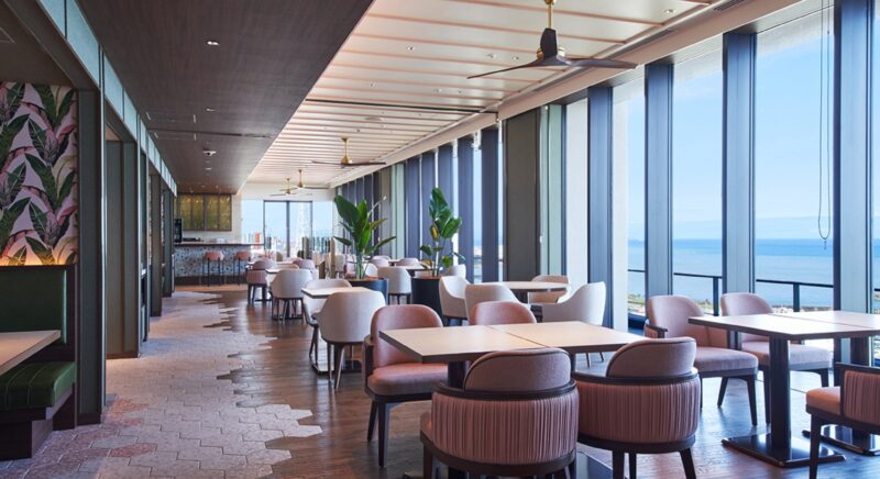 開放的な空間を持つ店内では、五感で楽しむライブキッチンで、沖縄県産食材を使った料理をはじめとした食、笑顔、洗練されたサービスで「おもてなし」いたします。