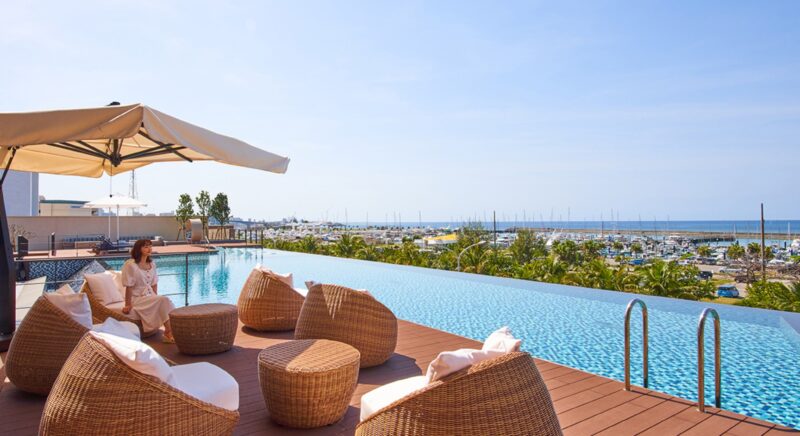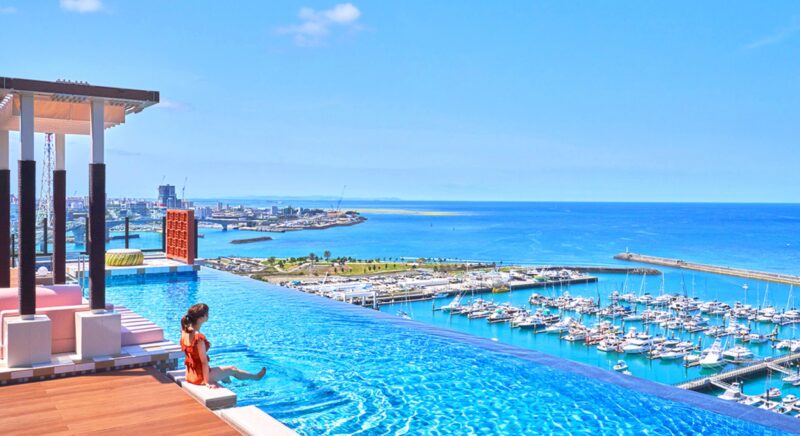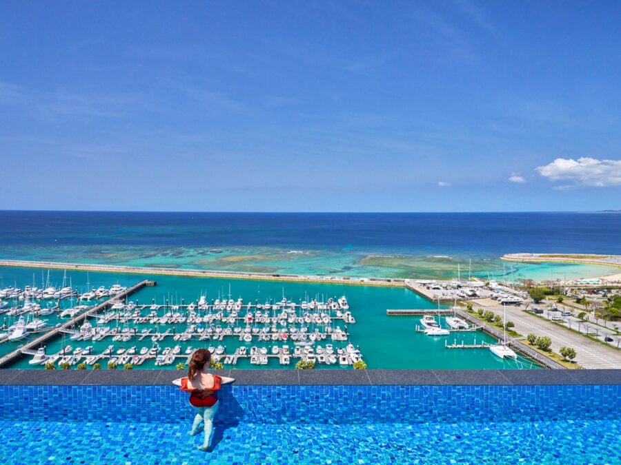 全室テラス付き、オーシャンビューは絶景。那覇空港から車で約30分と観光拠点として利便性の良いホテル。景色をお楽しみいただけるインフィニティプールはご宿泊客さまは無料でご利用いただけます。
