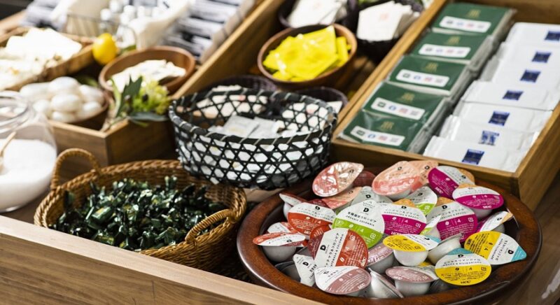 厳選アイテムを自由にお取り頂ける無料のアメニティスタンドをご用意しております。