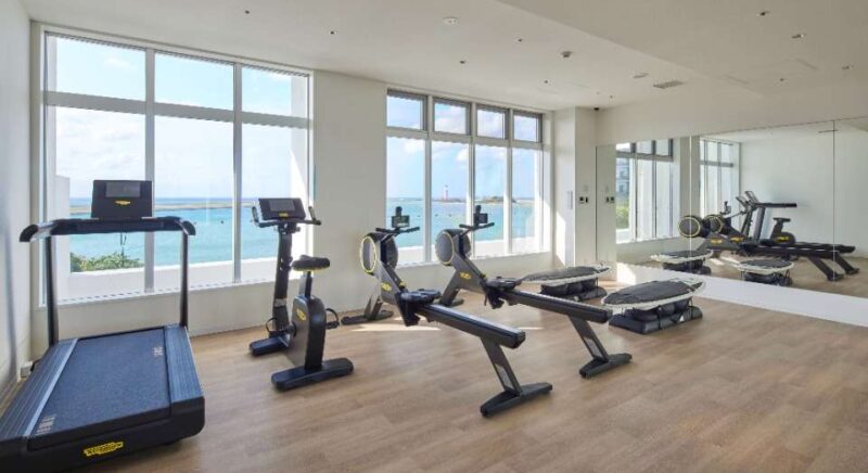 海を望みながらランニングや、バランスボールの上に固定されたサーフボードに乗り、まるで海に浮いているかのような気分でお楽しみいただけます。