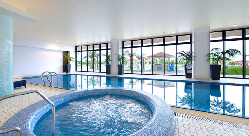 1年を通じて楽しめる屋内プール。荒天時やウインターシーズンなど、ガーデンプールがご利用いただけない時も屋内プールとジェットバスで、快適にお過ごしいただけます。