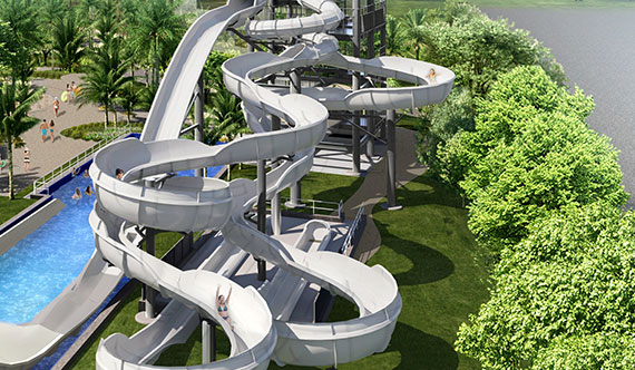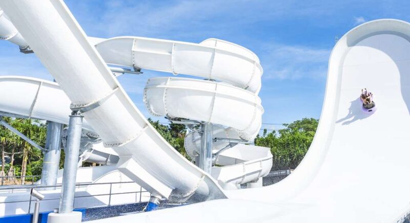 県内初上陸の大型スライダー。浮き輪に乗ってブーメランの様に滑走する大迫力アクティビティです。