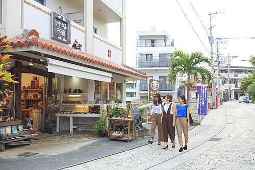 国際通りから牧志公設市場を通り、浮島通りへ行くと昔ながらの町並みが残っている古い建物を活かしたカフェや、雑貨・ファッションの店が道の両脇に並んでいます。国際通りから路地裏へ入って個性あふれるセンスのいいショップを散策しよう!