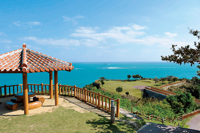 思わず歓声があがる絶景「知念岬公園」!海にせりだしたような岬に佇む公園からは、太平洋が一望でき、久高島やコマカ島を間近に見ることができる。