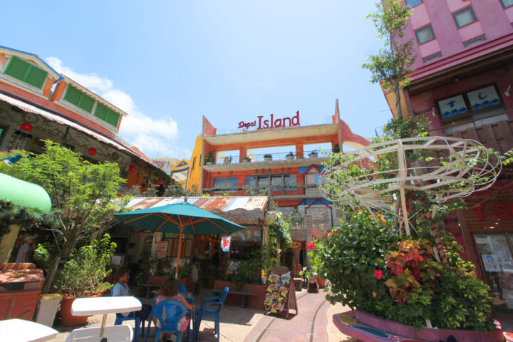 沖縄料理を食べられるお店やおしゃれなカフェ、ホテルまで、130を超える店舗が集まる「デポアイランド」。ショッピングの合間には海沿いのカフェで一息ついたり、夕日を見たりと、一日中遊べる場所です。