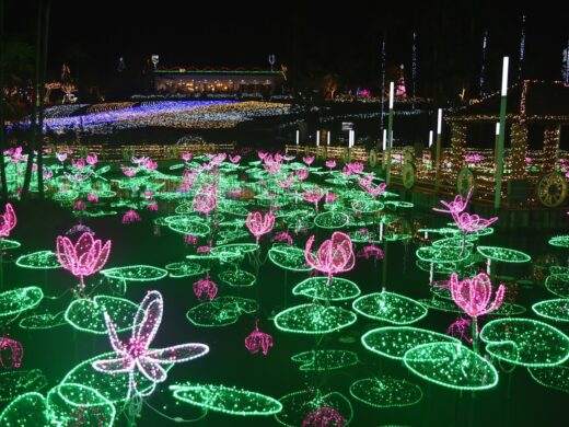 大人気スポットで、世界最大の魚ジンベエザメや、世界初の繁殖に成功したナンヨウマンタが観察できる超巨大水槽が有名です。水族館のある海洋博公園では、イルカショーを観られるオキちゃん劇場やウミガメ館、マナティ館、熱帯ドリームセンターなどがあります。