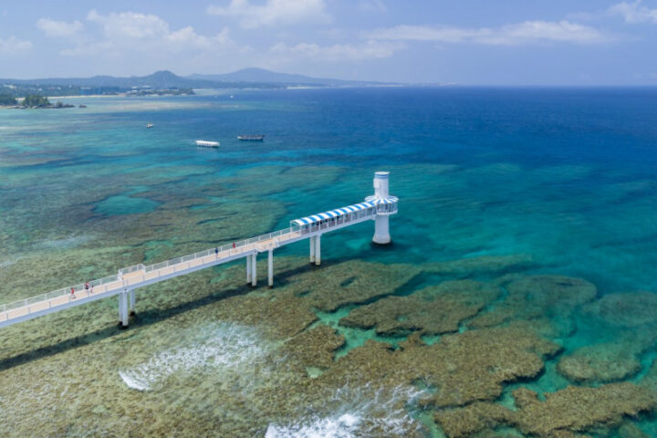 沖縄本島と古宇利島を結ぶ2005年に開通した古宇利大橋は全長なんと1,960メートル!真っすぐに伸びる橋とその両側に広がる美しい海の組み合わせは、まさに沖縄屈指の絶景スポット!