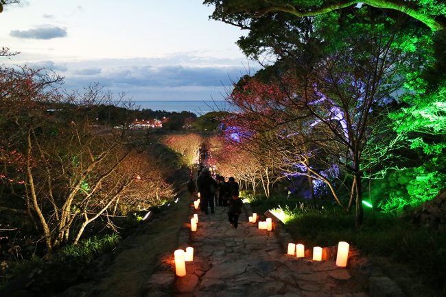 「琉球王国のグスク及び関連遺産群」のひとつとして世界遺産に登録されており、城を囲む石垣は地形を巧みに利用し曲線を描き、城壁のディテールは美しく、沖縄屈指の名城といわれています。毎年1月中旬から2月初めにかけてはカンヒザクラ(寒緋桜)が咲き誇り、桜の名所としても親しまれています。この時期は今帰仁グスク桜祭りが開催され美しい夜桜と城壁の幻想的なライトアップが楽しめます。