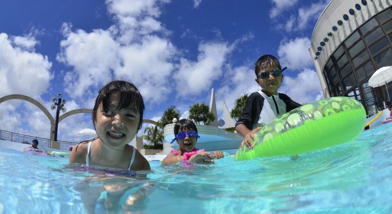 ★スリル満点のウォータースライダーや水深0.25mのお子様用プールなど県内最大級の多彩なプールでお出迎え