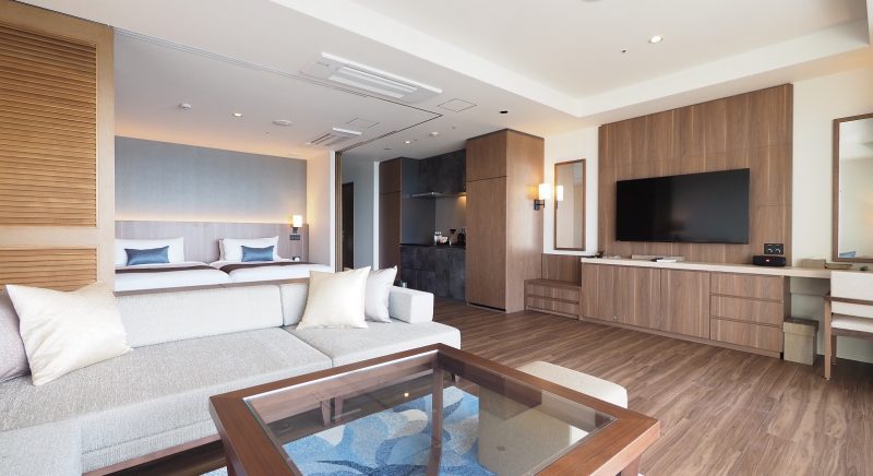 開放感溢れる広い客室は全室オーシャンビュー&61平米以上スイートタイプからのご案内で心地いい時間の流れの空間でラグジュアリーステイ
