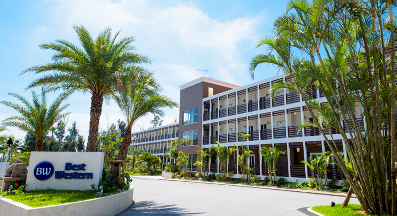 ホテル前は800mの天然のロングビーチとどこまでも広がる透き通ったキラキラ輝くエメラルド海の前にあるリゾート