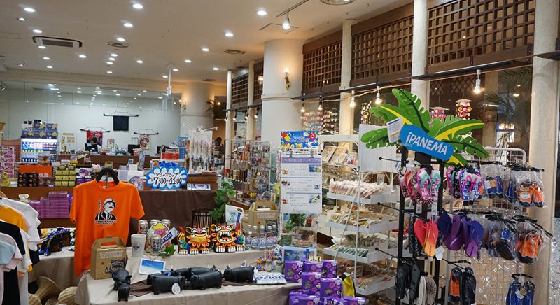 マリンアイテムやリゾートファッションを幅広くラインナップ。お土産菓子からコンビニコーナーまで、リゾートステイを満喫できるショップ。