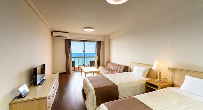 タワーウィングは全室オーシャンビュー。バストイレが別のツインルームです。