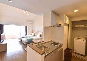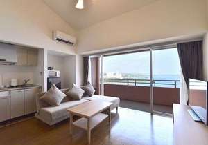 長期滞在により特化した宿泊施設を目指してリニューアル!バルコニーからはコバルトブルーの水平線。ミニキッチン付きで暮らすように滞在出来る。