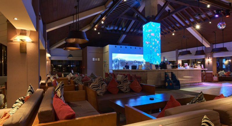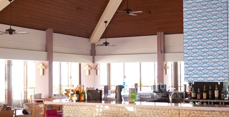 バーでは日中は穏やかな時間が流れ、夜には音楽が流れ活気が溢れます。海を眺めることができる大きな窓があり、開放感があふれる空間になっています。