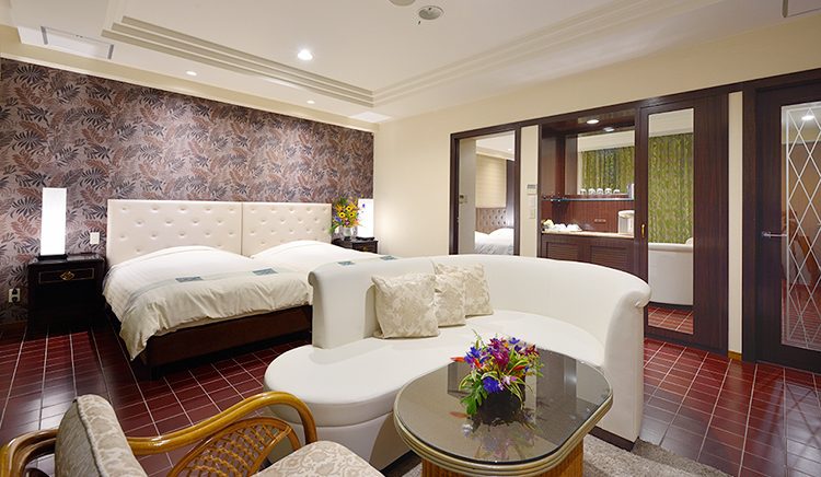 和の趣がある寝室は広さだけのゆとりとは違う居心地の良さを感じる寛ぎ。リビングと寝室に分かれたスイートタイプのお部屋で非日常空間を味わえます。