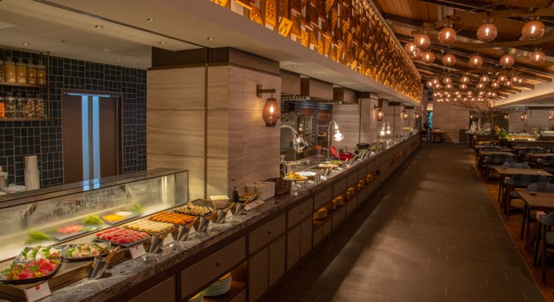 世界の料理をブッフェスタイルで常時100品。ブレックファスト・ランチ・ディナーと時間帯ごとに楽しめるライブキッチン。