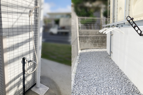 シャワー・物干し竿/館外駐車場横