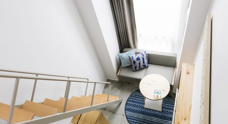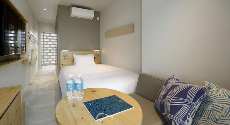 シンプルに自分らしい旅を楽しみたいゲストには、コンパクトな個室タイプのゲストルームを提案します。小上がりにより広がりがある客室にはW1400のベッドを設けています。