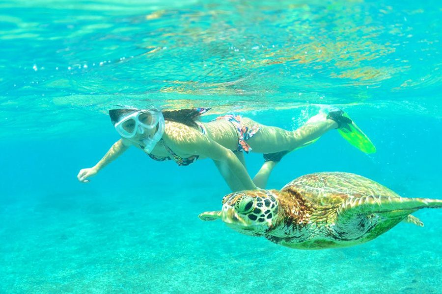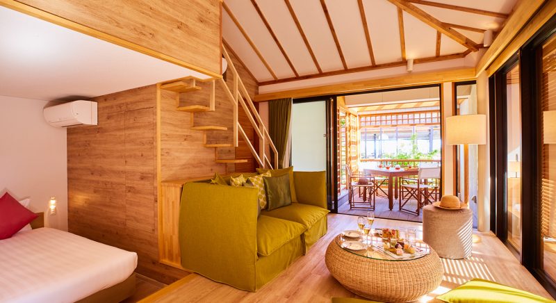 眩いばかりのブルーの世界に佇むスイートヴィラ。隣接する“インギャーマリンガーデン”は島内有数のシュノーケリングスポットです。
