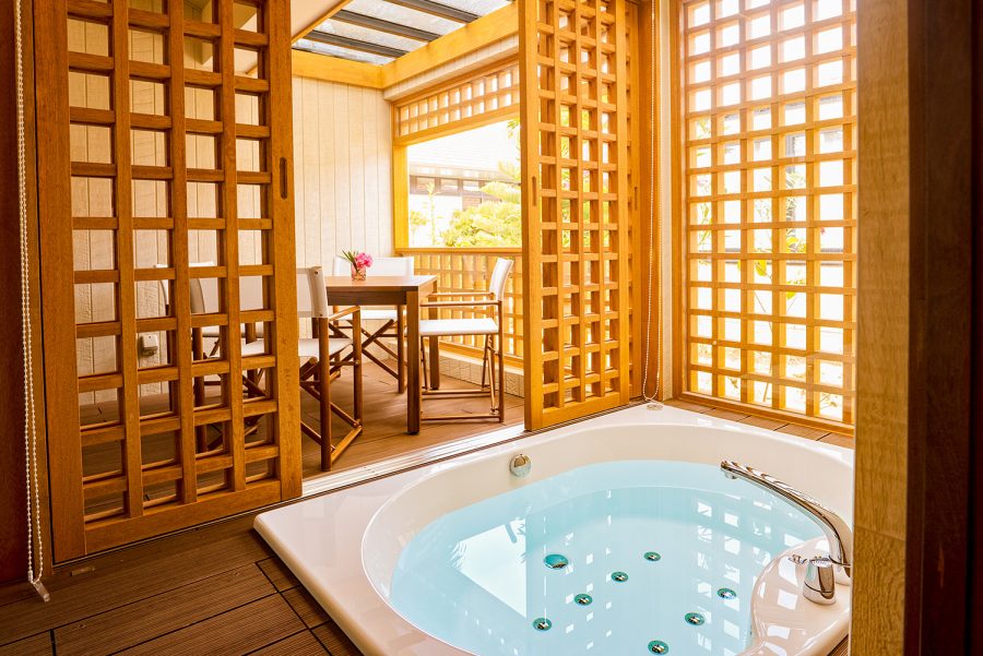 広大な敷地には温浴プール、スイミングプール、エステ、ジム、サウナ、カフェを併設。お客様のリゾートライフをさらに充実させるスポットです。