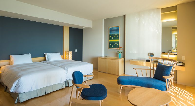 全室オーシャンフロント。1-2階、3-4階でカラーコンセプトが変わります。客室内を全てフローリングにし、気取らずに素足でゆったりとお寛ぎ頂ける贅沢な空間。朝起きてから夜眠るまで、石垣島の海と空をご堪能いただけます。