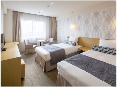 各階東側の角部屋。ゆったりとお過ごしいただけるツインルーム。3名様、4名様でのご利用時はソファベッド、スタッキングベッドのご用意となります。