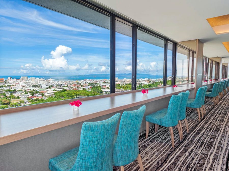 市街地から車で8分ほどの高台にあり、海を臨む景観がグッド。プール、大浴場があり、展望レストランで夜景を眺めながら地元食材を盛り込んだ食事も最高。