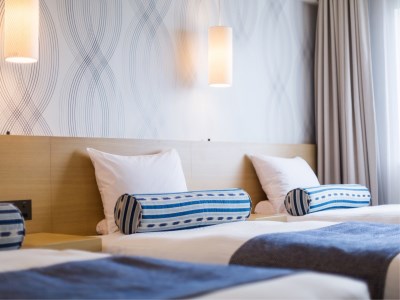 落ち着きある広々とした空間で、快適なホテルライフをお過ごしできます。ベッド幅:1,100mm※3名の場合、1台エキストラベッド使用