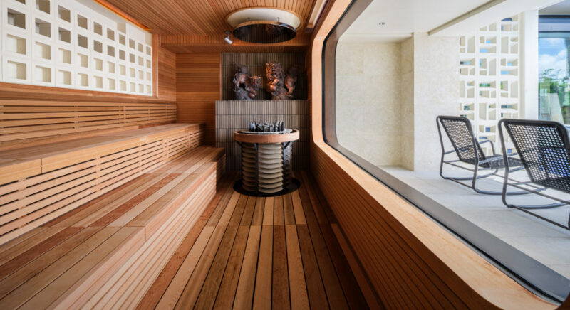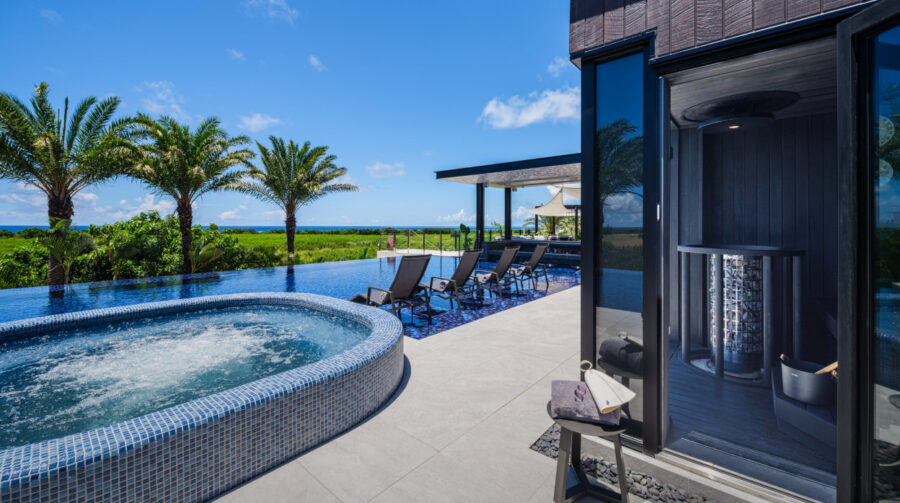 Sky Bar by BATIDAにある美しい海と水平線が望めるサウナルーム。ジャグジーや、インフィニティプールも。思うままに様々な楽しみ方が可能です。