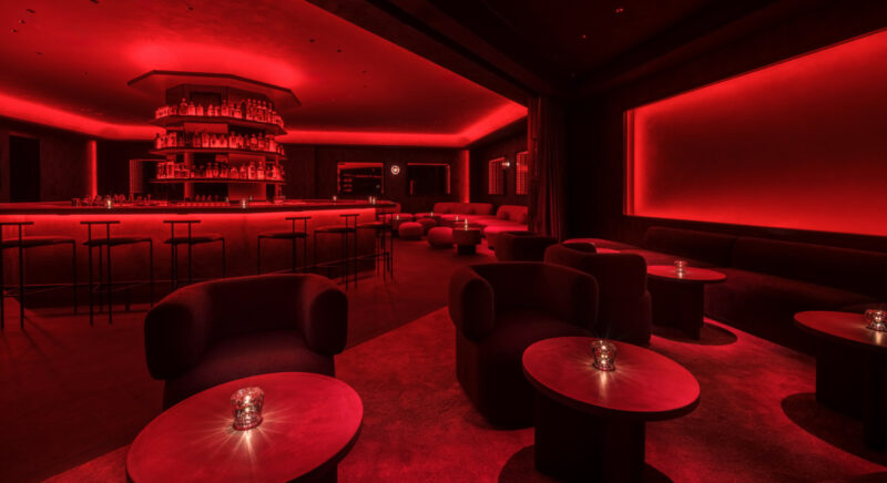 seven x seven石垣の秘密基地。それは地下1階のBar Red. 南国・石垣島らしからぬ「大人の遊び場」は赤色のLEDに彩られた怪しげな空間。ビリヤード、個室カラオケルームも完備。200種類を超えるジンと、最高の音楽。