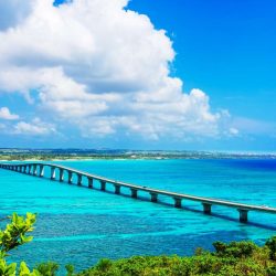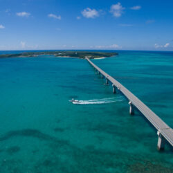 宮古島と伊良部島を結ぶ「伊良部大橋」。無料で渡れる橋としては日本最長の3540m!信じられない程の青い海を貫いて渡る爽快ドライブルート