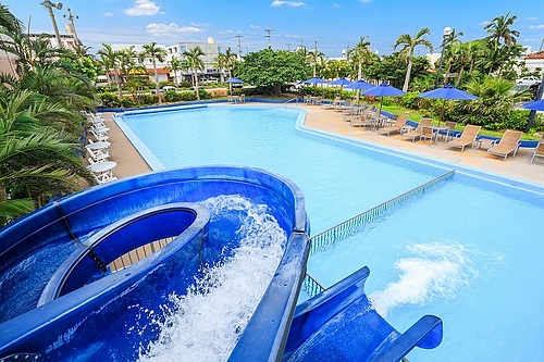 石垣の市街地から車で10分ほどの高台にあるホテル。石垣島で一番の大きさの広々とした大浴場は滞在中利用無料。4月~10月はガーデンプールの利用もでき、水しぶきをあげて滑り落ちるウォータースライダーが子どもに人気。水深の浅いキッズプールも併設しており、お子様連れのファミリーにもおすすめです。。ホテルロビーでは地元出身アーティストによる“ゆいぐくるライブ”を毎晩開催しているので滞在中毎日八重山芸能が楽しめます。