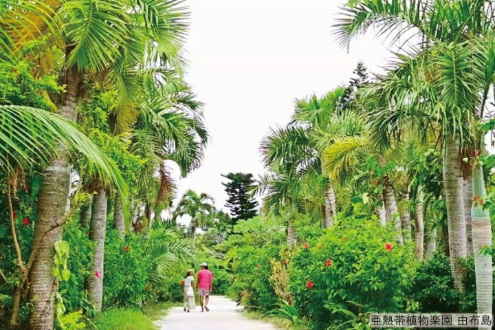★水牛車で浅瀬の海を渡り、亜熱帯植物楽園 由布島を見学。