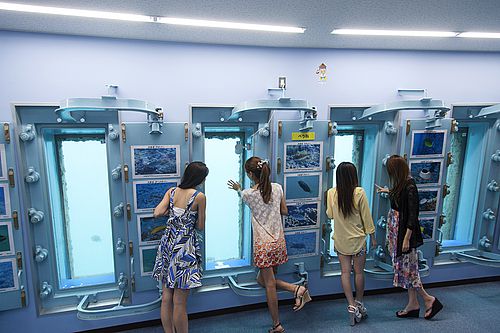 宮古島海中公園はお子様から年配者まで「普段着のまま・気軽に」豊かな海洋資源とふれあうことができる宮古島の観光スポット。メインの海中観察施設は、24個のアクリルパネルの窓から大海とつながる自然の一部を見ることができます。