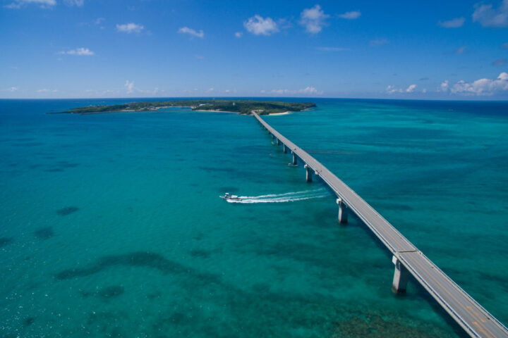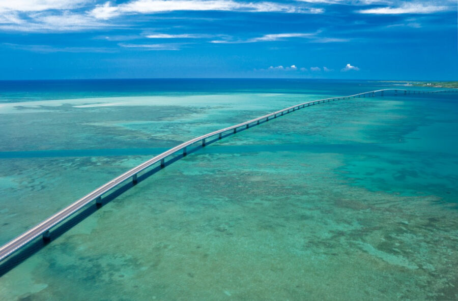 宮古島は周辺離島と橋で繋がっており、宮古ブルーと呼ばれる透き通った青い海を見渡せる絶景スポットとして人気。3つの大橋を渡って各島の観光スポットをご紹介します。