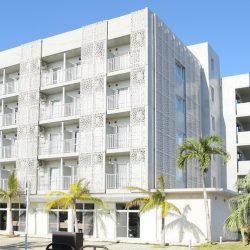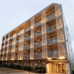 宮古島中心部の繁華街「西里大通り」沿いに立地しビジネスや観光に便利なホテル。コンビニも徒歩5分圏内。全室乾燥機付き洗濯機や電子レンジを完備しており長期滞在にも最適。