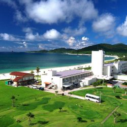 広い庭には南国を感じられ、ゆったりできる。久米島最大級のリゾートホテル。イーフビーチでのマリンメニューも豊富。