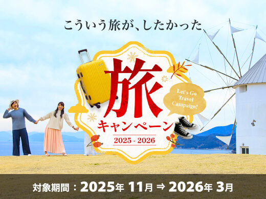- 2025/08/27【旅キャンペーン】11月~3月出発!雄大な自然に温泉、ご当地グルメにアートを満喫!とっておきの旅へ出掛けませんか♪
