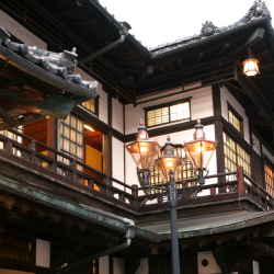 日本最古の名湯、道後温泉のシンボルで国の重要文化財。趣のある木造三層楼の本館は、古くは古事記や万葉集にも登場し坊っちゃんや千と千尋の神隠しなど著名な小説や映画の舞台になってきました。現在、改修工事中ですが入浴は可能。
