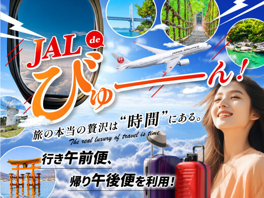 - 2025/09/26【JALdeびゅーん!】往路は午前便・復路は午後便利用がお得!4路線限定★12月~3月出発さらにお値下げしました!
