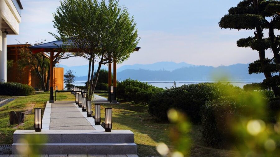 世界遺産「宮島」と厳島神社を正面から望めるリゾートホテル。開放的な雰囲気のエントランスや瀬戸内海の景観を楽しめるシーサイドテラス、サウナ付大浴場、瀬戸内の恵みをいただく会席料理など、贅沢な休日をお楽しみください。ホテル桟橋から出る世界遺産ナイトクルーズ(有料)も人気。