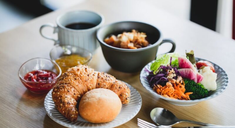 自然の豊かな恵みを感じられる色とりどりのサラダ&フルーツバー、お好みや気分に応じていろいろ選べるハウスメイドスープに香ばしい焼き立てパンと挽きたてのコーヒー 「シンプルだけどうれしい」道後hakuroの朝食を、思い思いのチョイスでお楽しみください。