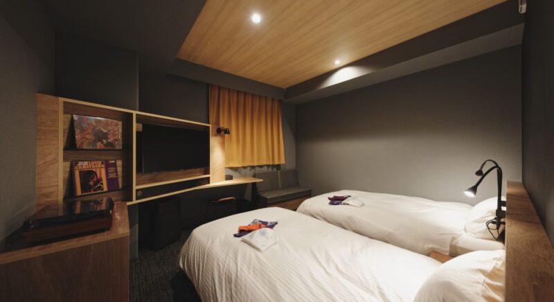 幅110cmのシモンズベッド2台とユニットシャワーを備えたコンパクトなツインルーム。ご夫婦やカップル、お友達同士でのお泊りに最適です。
