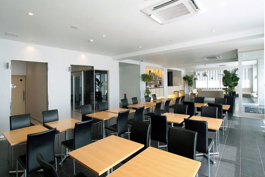 フロント横に朝食会場がございます。和食メインのバイキングにてご用意しております。