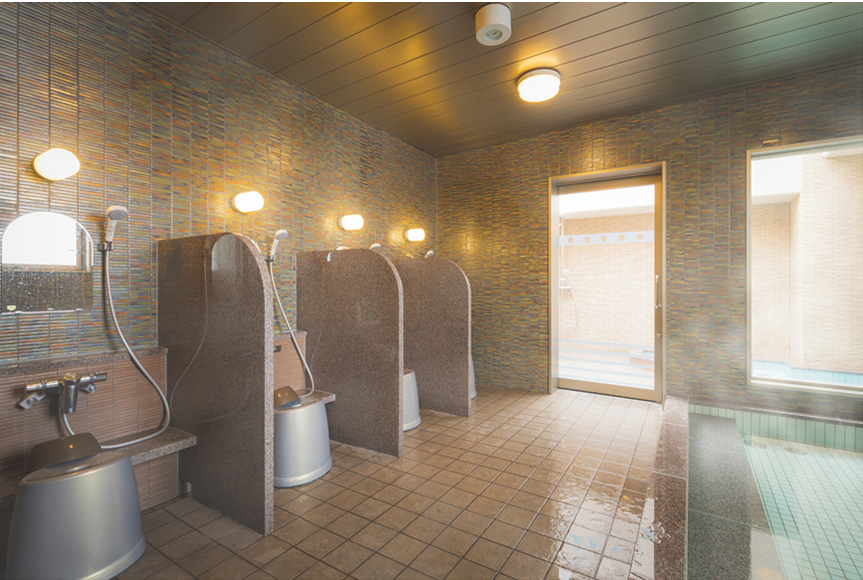 女性浴室には暗証番号セキュリティロックを採用し女性も安心してご入浴いただけます。