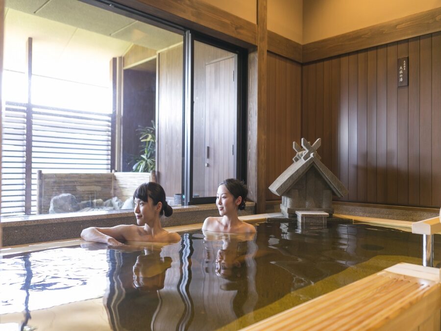 出雲大社まで徒歩8分!神話の国出雲に誕生した高級旅館。全てのお部屋に趣の異なる客室風呂がございます。贅を尽くした設えと良質な天然温泉をご堪能ください。夜鳴きそばや湯上り処でのサービス、無料の貸切風呂等、共立リゾートならではのサービスも充実。全室禁煙。