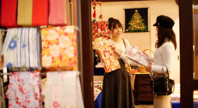 色浴衣を着て温泉街の散策をお愉しみください。※レンタル無料です。2023年10月より有料(500円)となります。