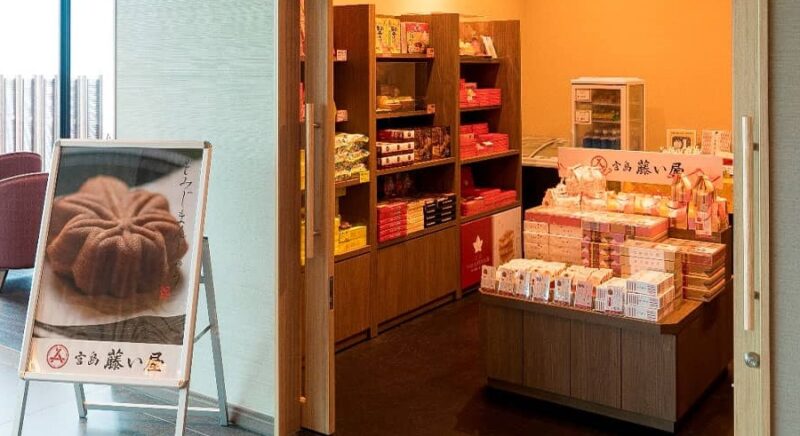 「もみじ饅頭」・「メイプルバターサンド」など広島名産のお土産を販売しています。また、「しゃもじ絵付け無料体験」も承ってます。