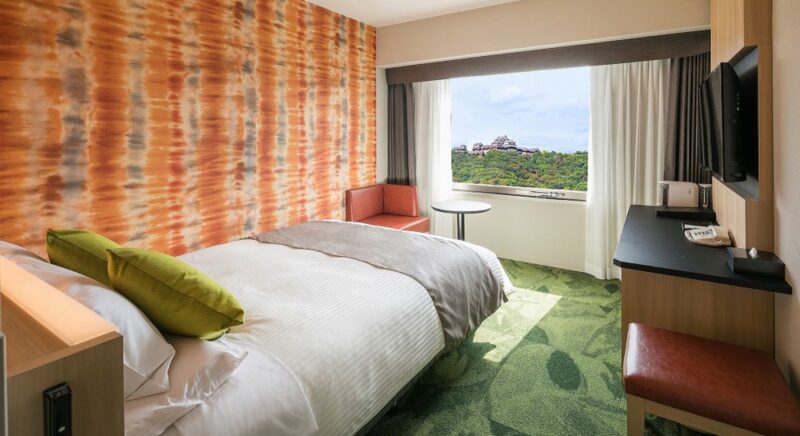 幅160cmのクイーンベッドを備えたお部屋で、大人2名様までご宿泊可能です。 お部屋からは松山城をご覧いただけます。無料Wi-Fi・加湿器付き空気清浄機(プラズマクラスター)も完備しております。